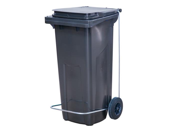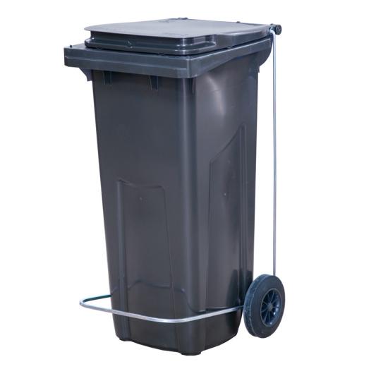 Бак для мусора 120 л. 55*45*96 см. серый, с крышкой на колёсах с педалью /1/