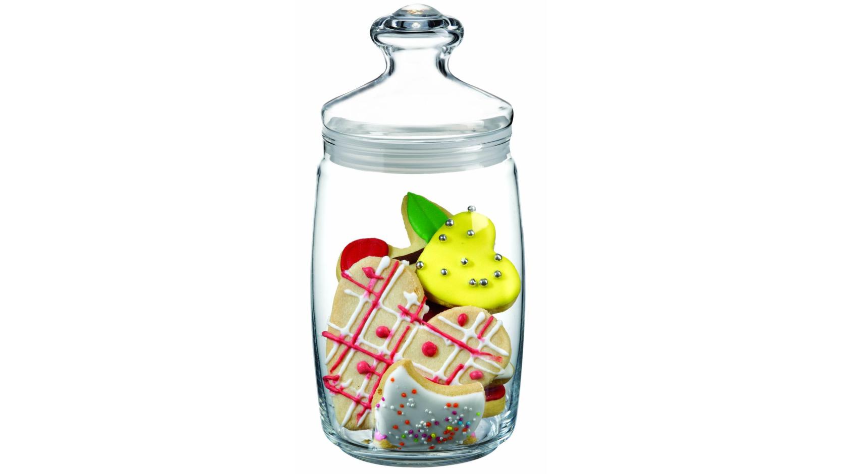 Банка для сыпучих продуктов выполнена из высококачественного стекла.