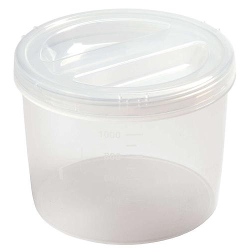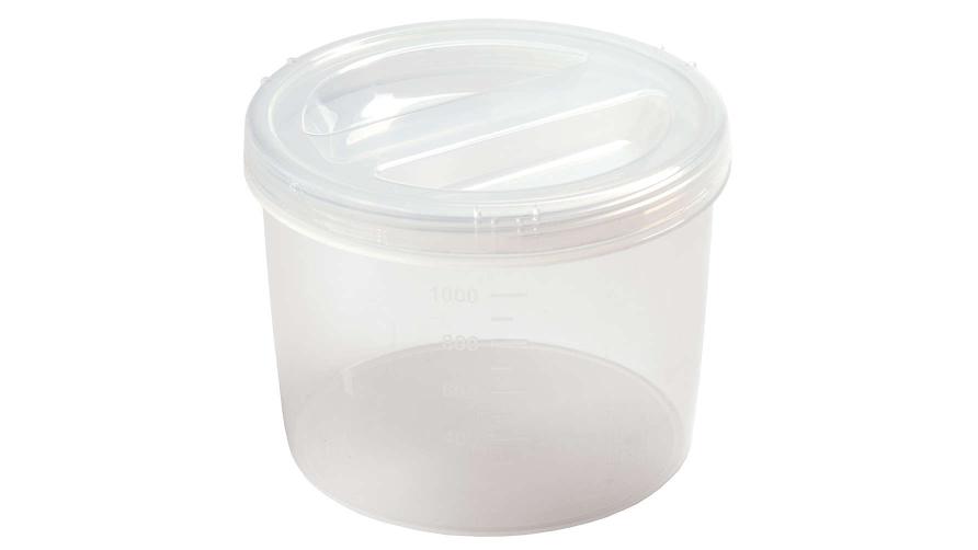 Прозрачный корпус и крышка позволяют видеть содержимое, а мерная шкала на корпусе поможет определить объем продукта.