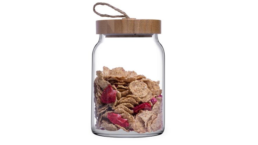 Банка для сыпучих прод. 860 мл. с дерев. крышкой Вуди /1/6/360/