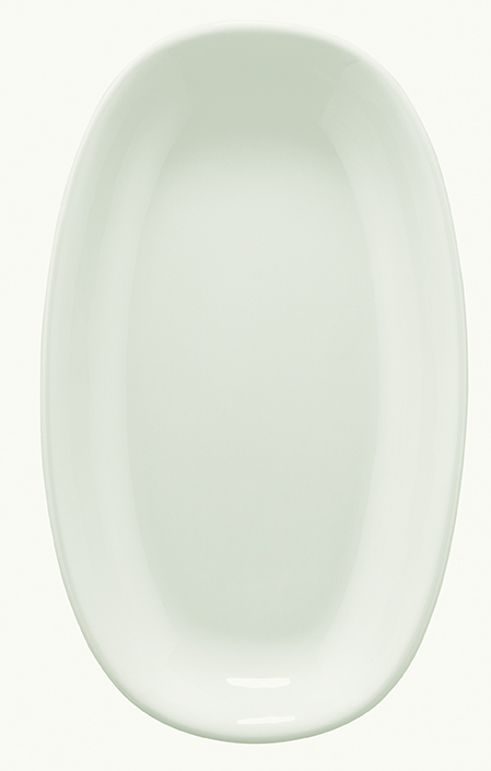 Блюдо белого цвета со сливочным оттенком.