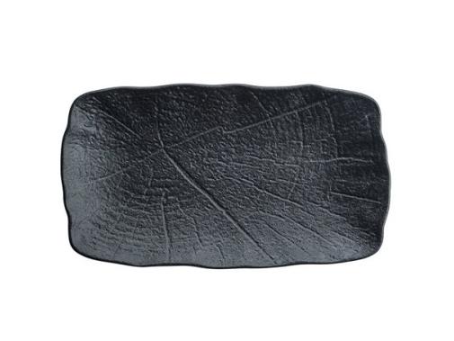 Блюдо для подачи насыщенного черного цвета со стилизацией поверхности под рисунок листьев лотоса.