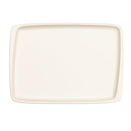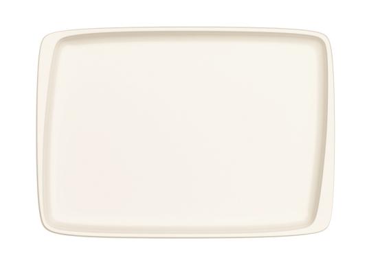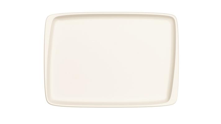Блюдо белого цвета со сливочным оттенком.