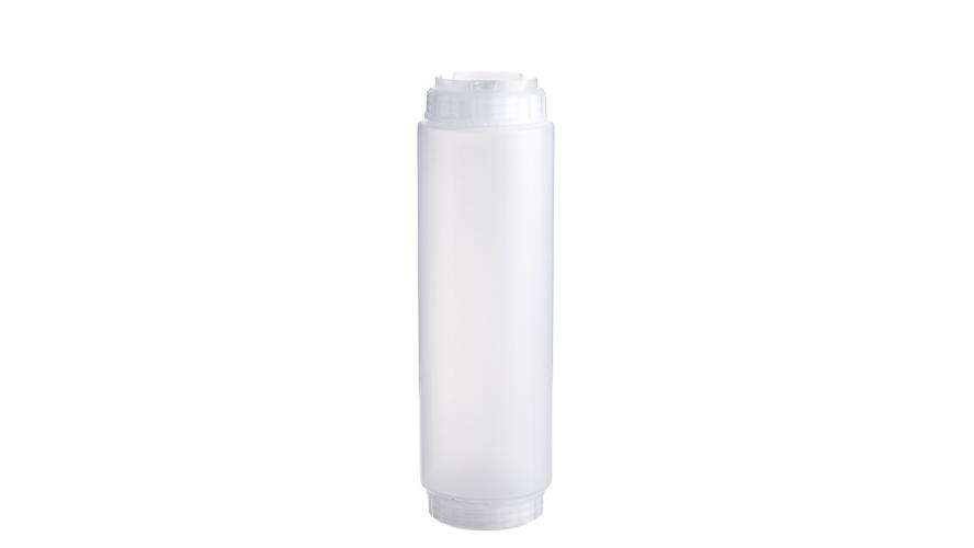 string(908) "Емкость для соуса 1000 мл выполнена из прочного пищевого пластика и предназначена для профессионального использования в сегменте HoReCa. Конструкция имеет две откручивающиеся крышки и съемный силиконовый клапан, что обеспечивает удобство наполнения, использования и ухода, а также позволяет дозировать содержимое без подтеков и экономит место для хранения. Прозрачный цвет служит универсальной маркировкой и облегчает визуальный контроль содержимого. Подходит для мытья в посудомоечной машине."