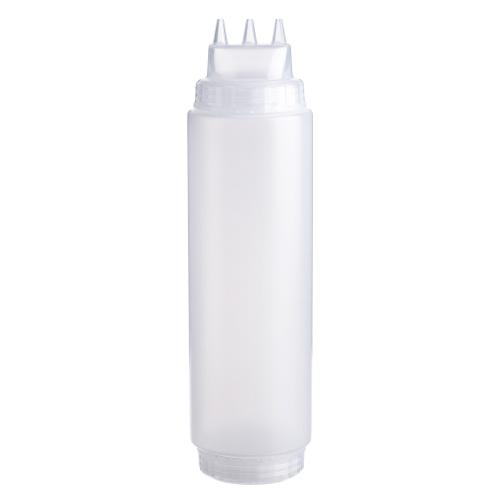 Емкость для соуса 1000 мл выполнена из прочного пищевого пластика и предназначена для профессионального использования в сегменте HoReCa. Конструкция с двумя откручивающимися крышками обеспечивает удобство наполнения, использования и ухода. Тройной дозирующий носик позволяет быстро и точно распределять содержимое. Прозрачный цвет служит универсальной маркировкой и облегчает визуальный контроль содержимого. Подходит для мытья в посудомоечной машине.