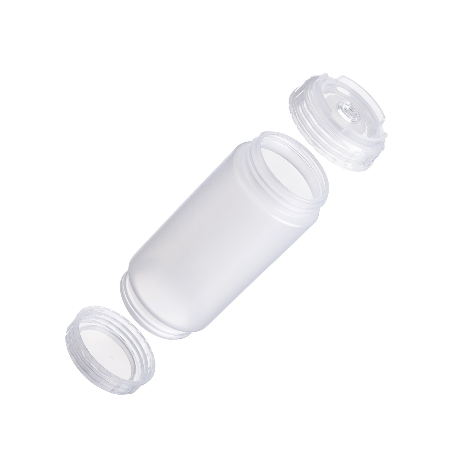 Емкость для соуса 500 мл. d=70 мм. h=166 мм. с 2 крышками, с силик. носик. широкая прозрачная, крышки прозрачные GP /1/96/