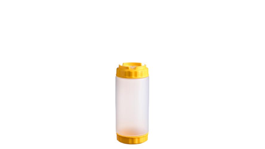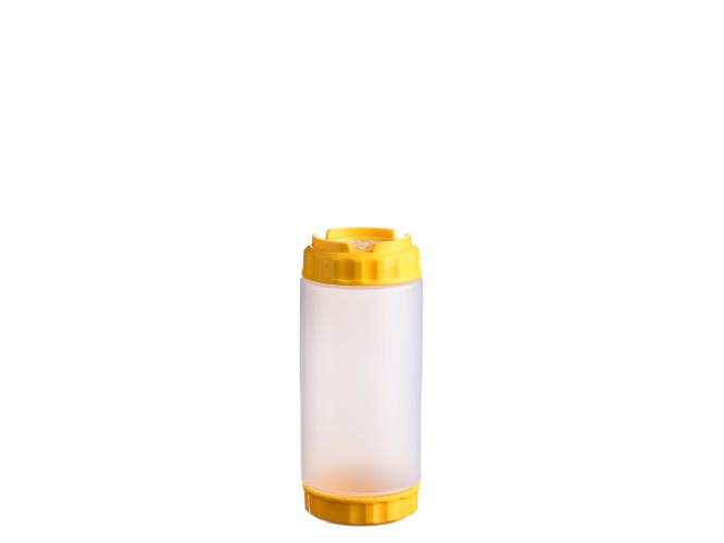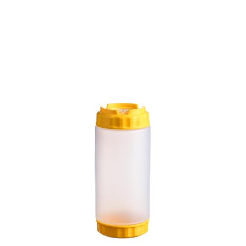 Емкость для соуса 500 мл. d=70 мм. h=166 мм. с 2 крышками, с силик. носик. широкая прозрачная, крышки желтые GP /1/96/