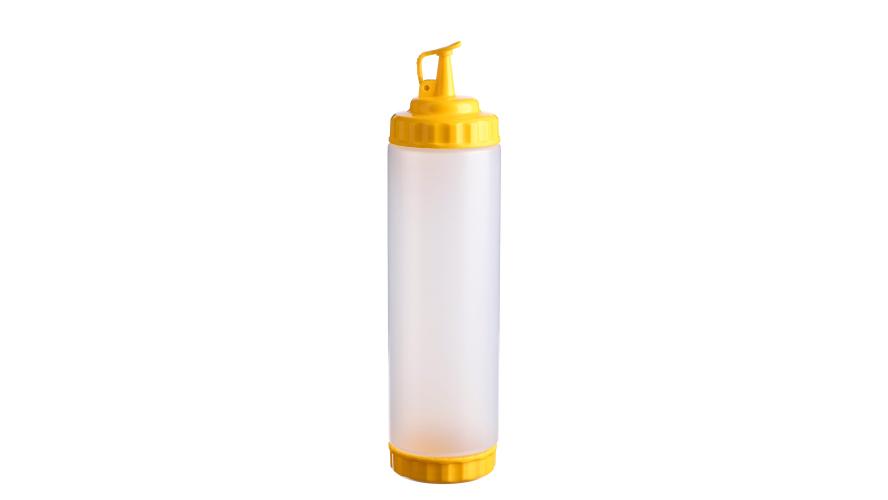 string(902) "Емкость для соуса 750 мл выполнена из прочного пищевого пластика и предназначена для профессионального использования в сегменте HoReCa. Конструкция с двумя откручивающимися крышками обеспечивает удобство наполнения, использования и ухода. Дозирующий носик с крышкой-клапаном предотвращает проливы и защищает содержимое от загрязнений. Желтый цвет служит маркировкой для горчицы и меда. Прозрачный корпус облегчает визуальный контроль содержимого. Подходит для мытья в посудомоечной машине."