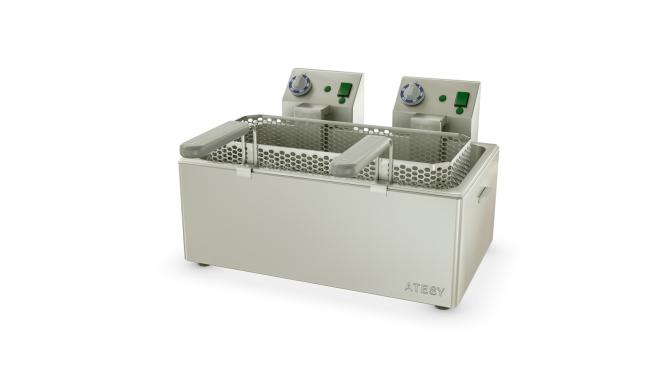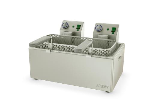 Фритюрница ATESY Панда-ЕВРО-1х1/1 используется на предприятиях общественного питания и торговли для приготовления различных видов продуктов в разогретом масле (фритюре). Модель оснащена 2 терморегуляторами и 4 индикаторными лампами. Изделие и сетка для загрузки продуктов полностью выполнены из пищевой нержавеющей стали, ручки сетки - из "холодного" пластика.