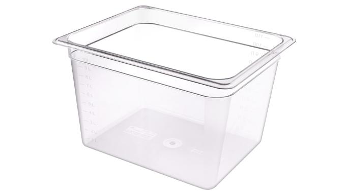 Гастроемкость GN 1/1 65 отвечает всем европейским и российским гигиеническим стандартам и нормам. Их можно мыть в любой посудомоечной машине при температуре до +95°С, используя любое моющее средство. Изготовлена из полипропилена, цвет прозрачный.