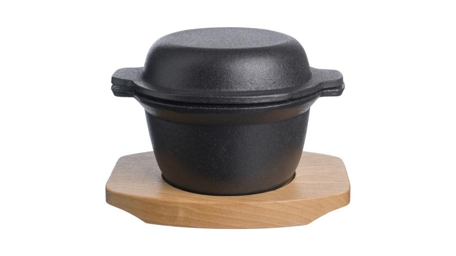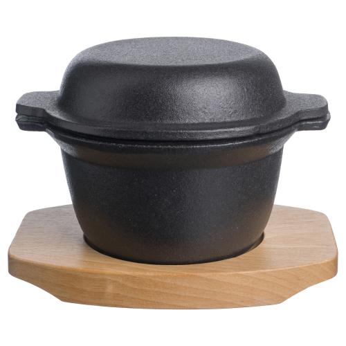 Горшок для запекания и подачи 300 мл. d=115 мм. h=65 мм. с крышкой, чугун. на дерев. подставке/1/