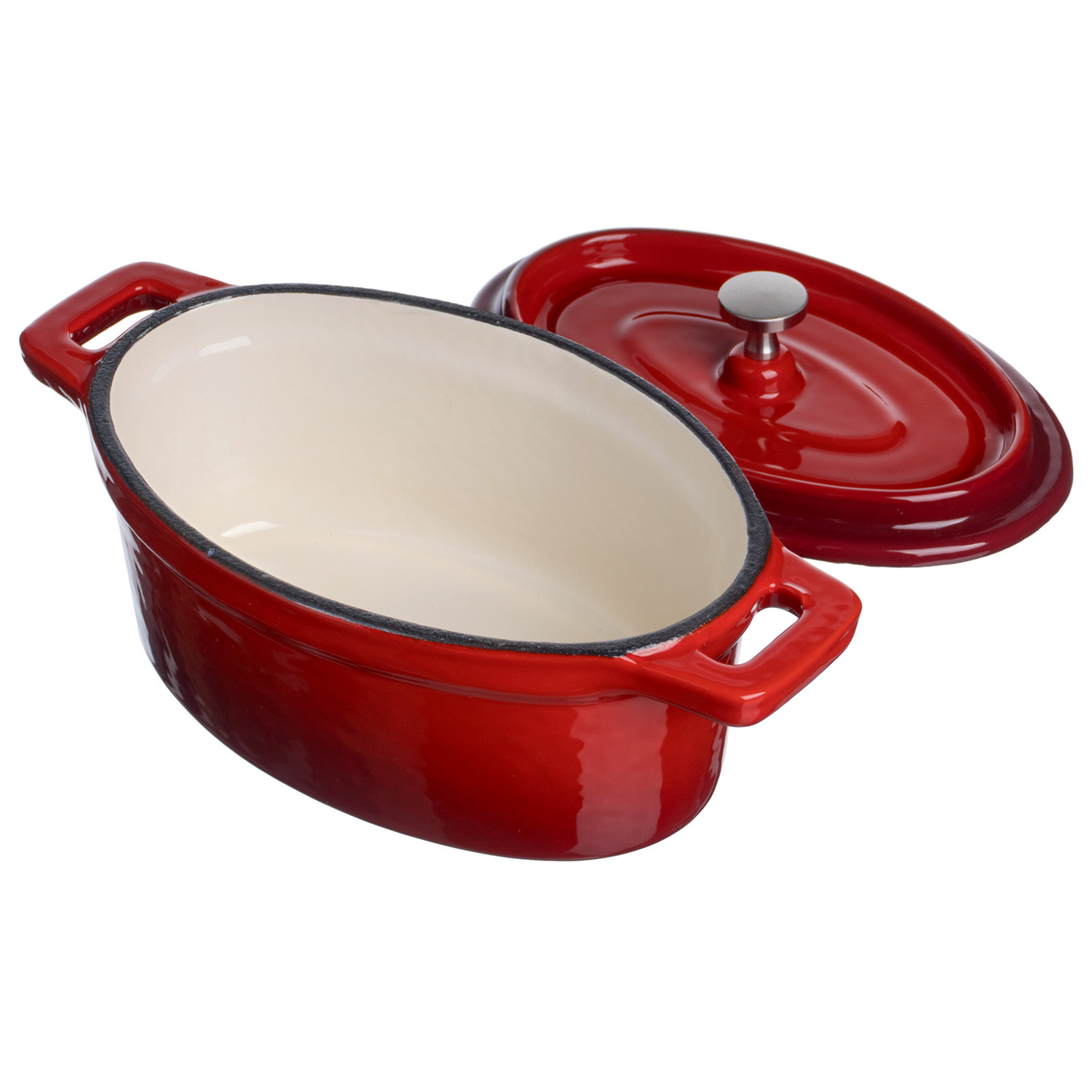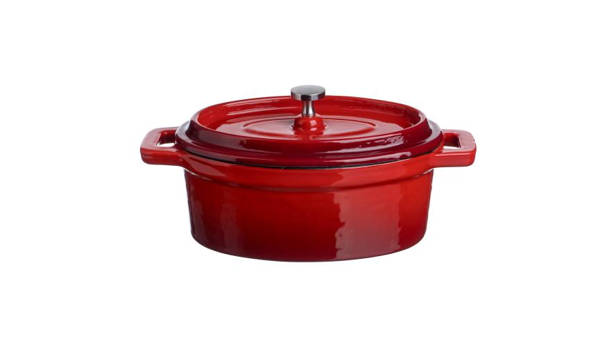 Кастрюля для запекания 450 мл. 150*100 мм. h=70 мм. с крышкой, красная, чугун /1/