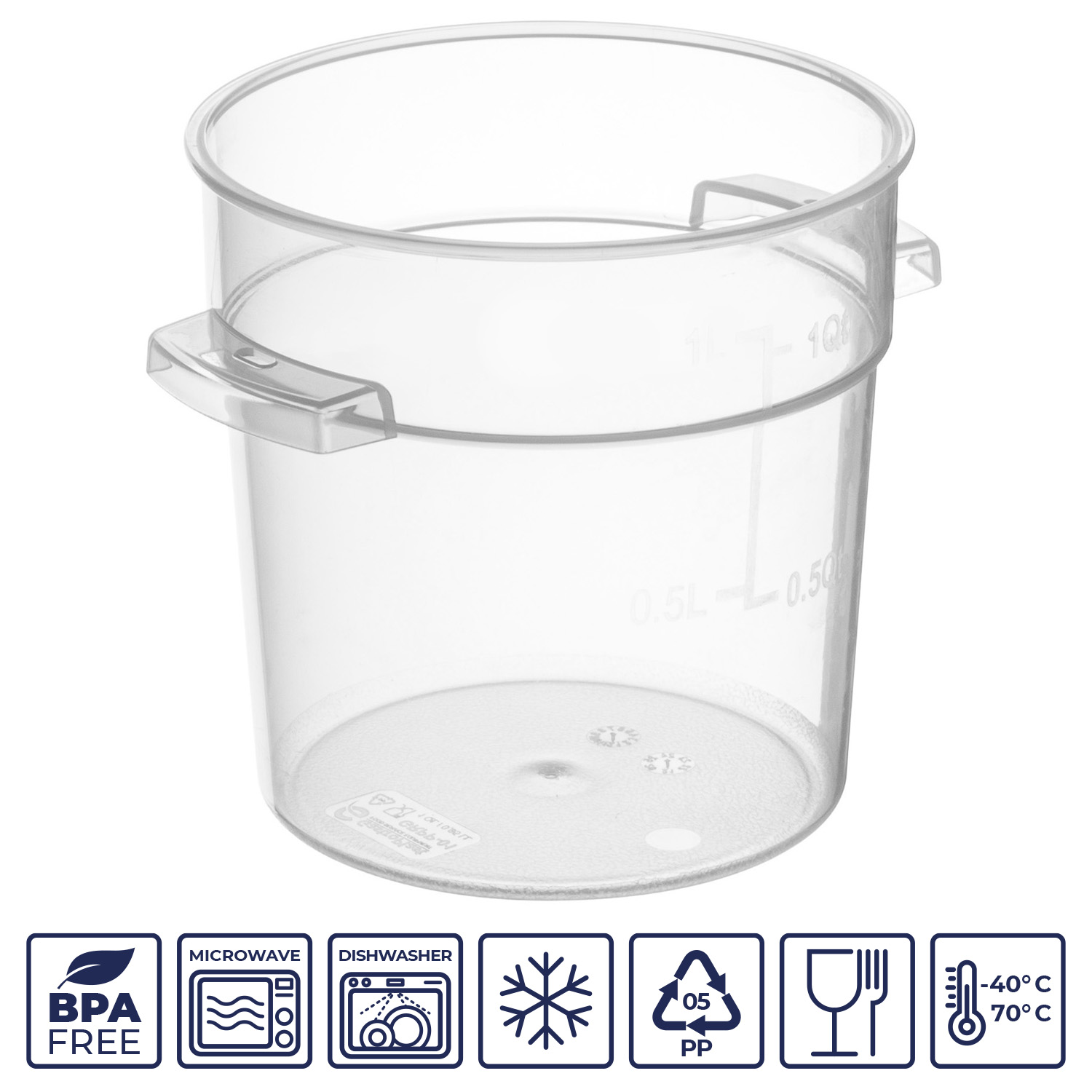 Градуировочные (мерные) знаки на стенках контейнера делают его использование еще более комфортным, позволяя легко измерять объем содержимого и контролировать порции.