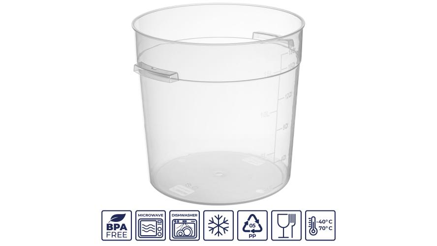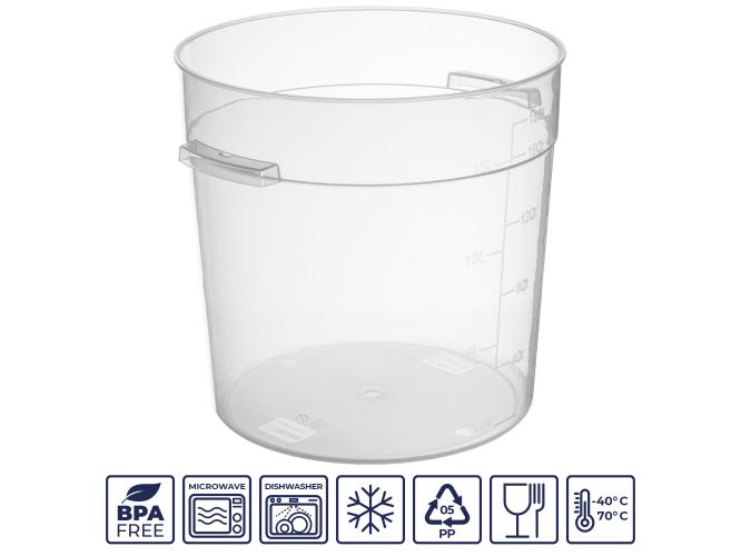Контейнер для продуктов круглый 17 л. d=30 см. h=30 см., с мерной шкалой, прозрачный, п/п, без крышки (крышка 76740, 76739, 76738, 76741) GP /1/6/ ТП