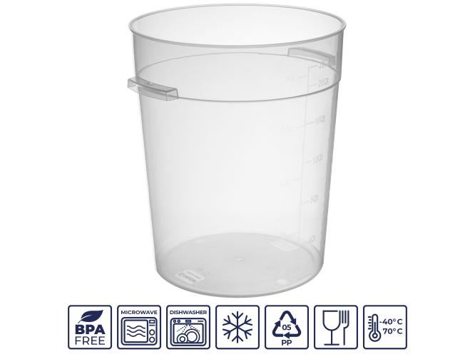 Контейнер для продуктов круглый 20,82 л. d=31 см. h=37,5 см., с мерной шкалой, прозрачный, п/п, без крышки (крышка 76740, 76739, 76738, 76741) GP /1/6/