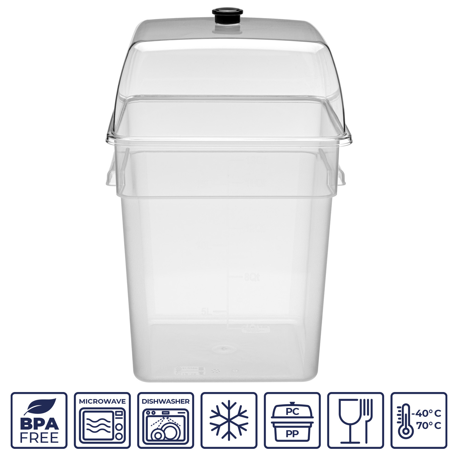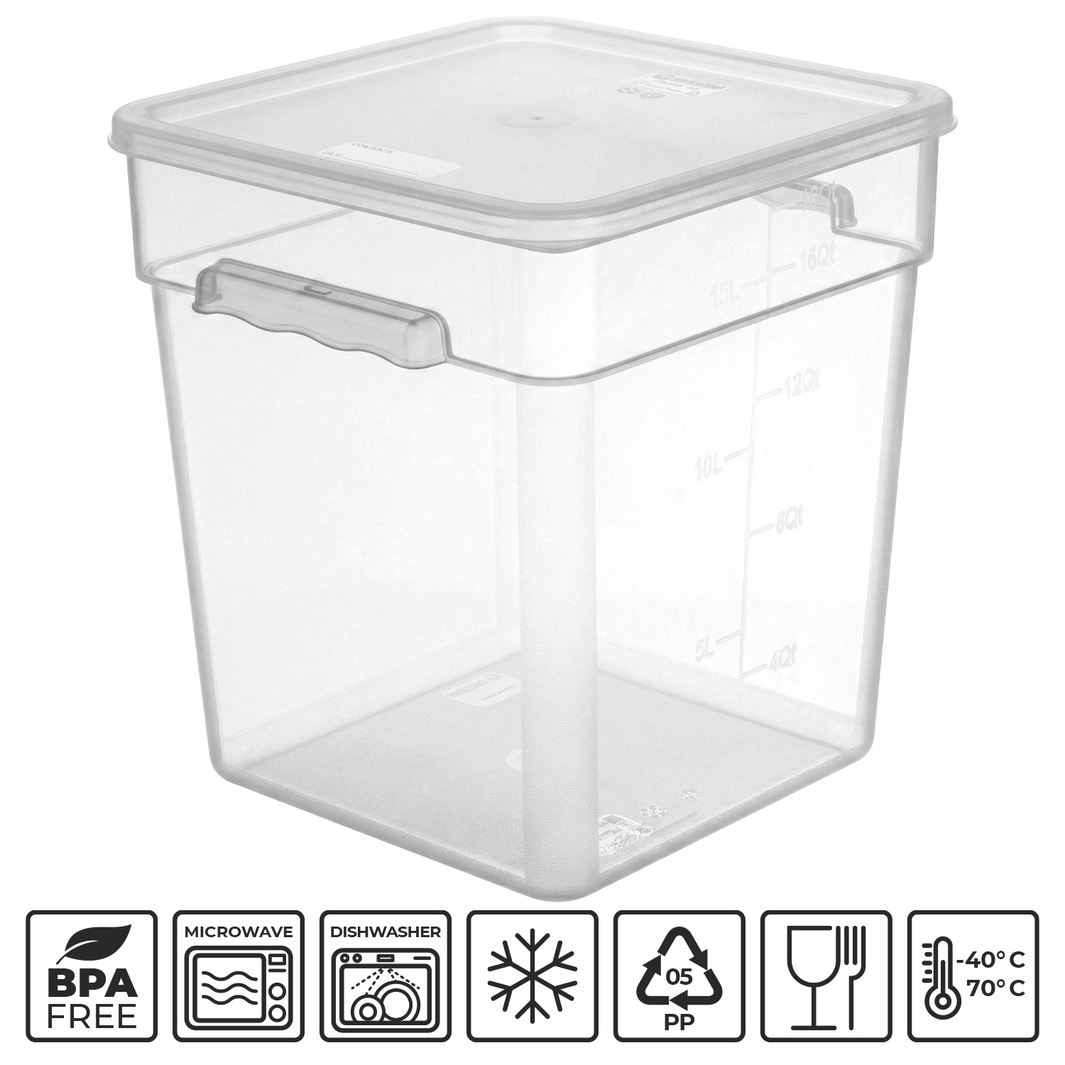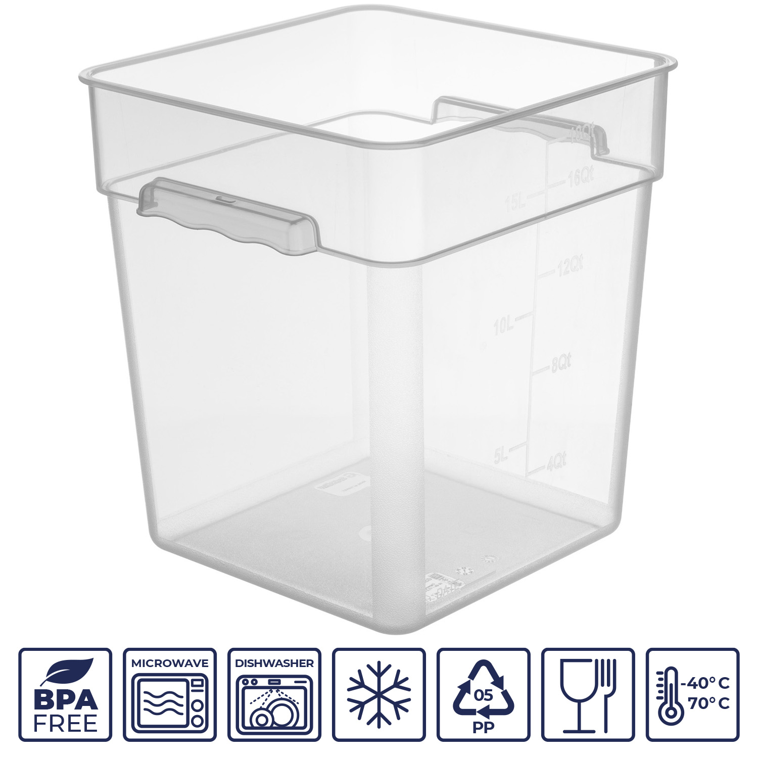 Градуировочные (мерные) знаки на стенках контейнера делают его использование еще более комфортным, позволяя легко измерять объем содержимого и контролировать порции.