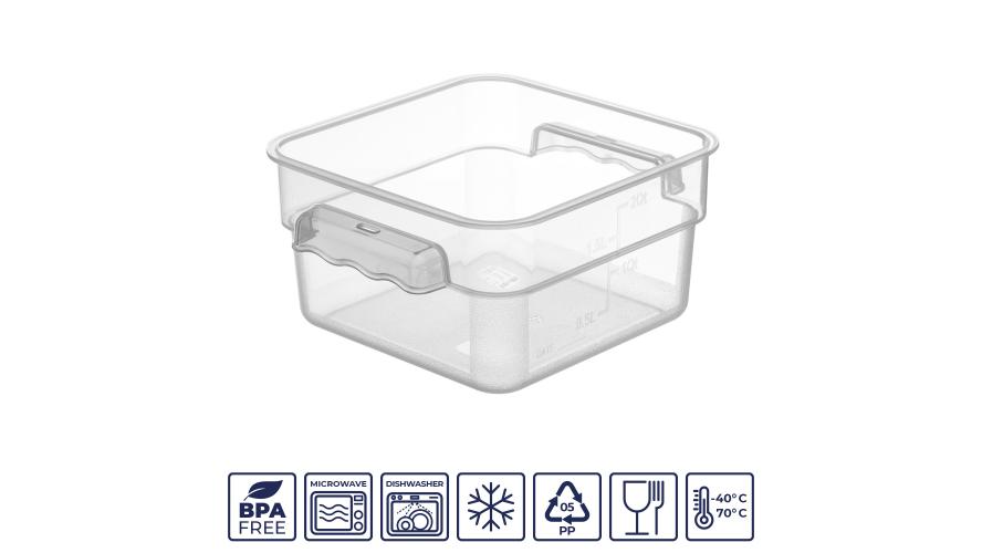 Контейнер для продуктов квадратный 1,9 л. 19*19*9,7 см. с мерной шкалой, прозрачный, п/п, без крышки (крышки 76706, 76707, 76708,76709) GP /1/12/