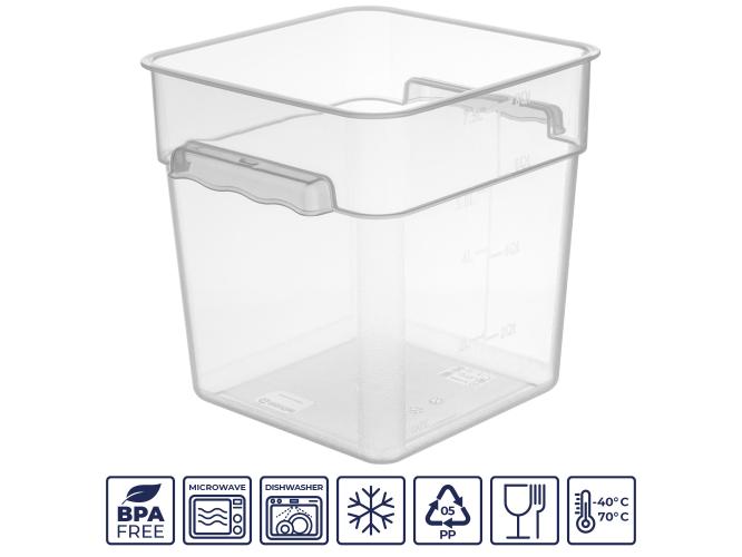 Контейнер для продуктов квадратный 7,6 л. 22*22*23 см. с мерной шкалой, прозрачный, п/п, без крышки (крышка 76712, 76711, 76712, 76713) GP /1/12/