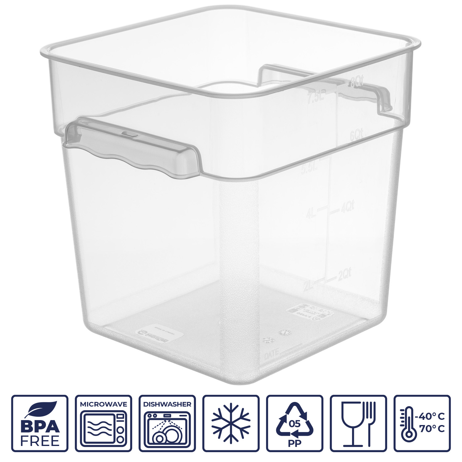 Градуировочные (мерные) знаки на стенках контейнера делают его использование еще более комфортным, позволяя легко измерять объем содержимого и контролировать порции.