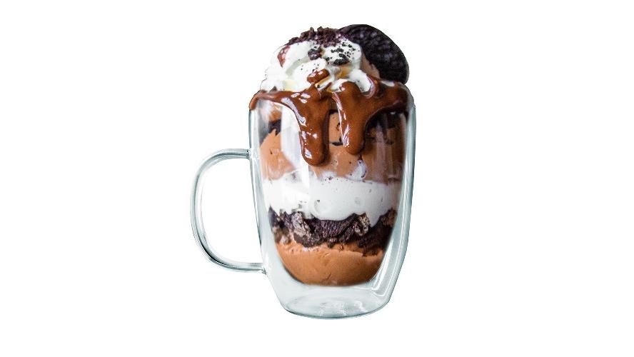Чашка с двойными стенками для напитков и десертов; долго сохраняет температуру содержимого, при этом внешнее стекло остается безопасным на ощупь; благодаря системе двойных стенок напиток словно парит, особый оптический эффект.