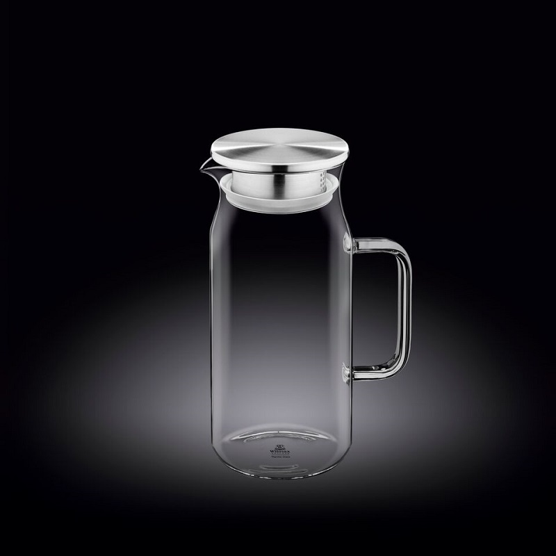 Кувшин 1 л. d=85 мм. h=210 мм. с крышкой + сетка нерж Термостекло Wilmax /1/18/