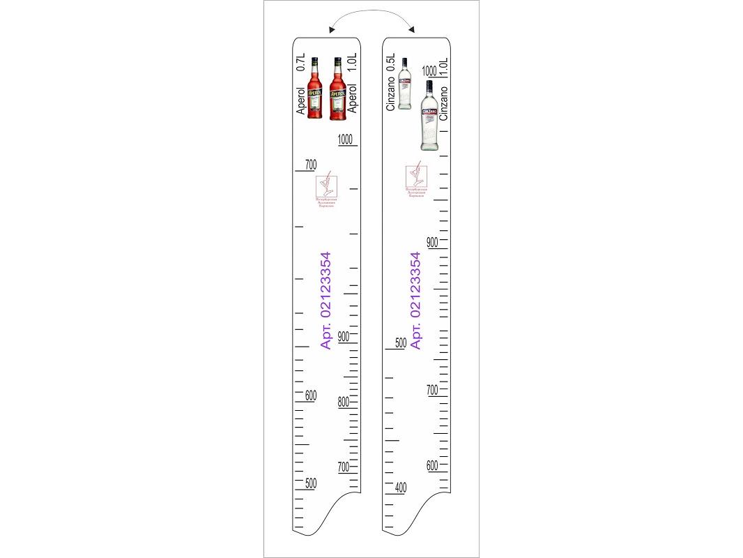 Линейка Aperol (0.7 л./1 л.)/ Cinzano (0.5 л./1 л.) L=28 см. В=2 см. /1/