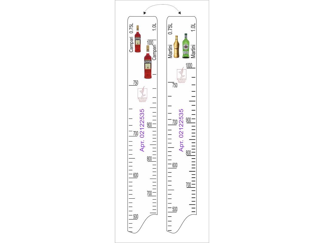 Линейка Campari (0.75 л./1 л.)/ Martini (0.75 л./1 л.) L=28 см. В=2 см. /1/