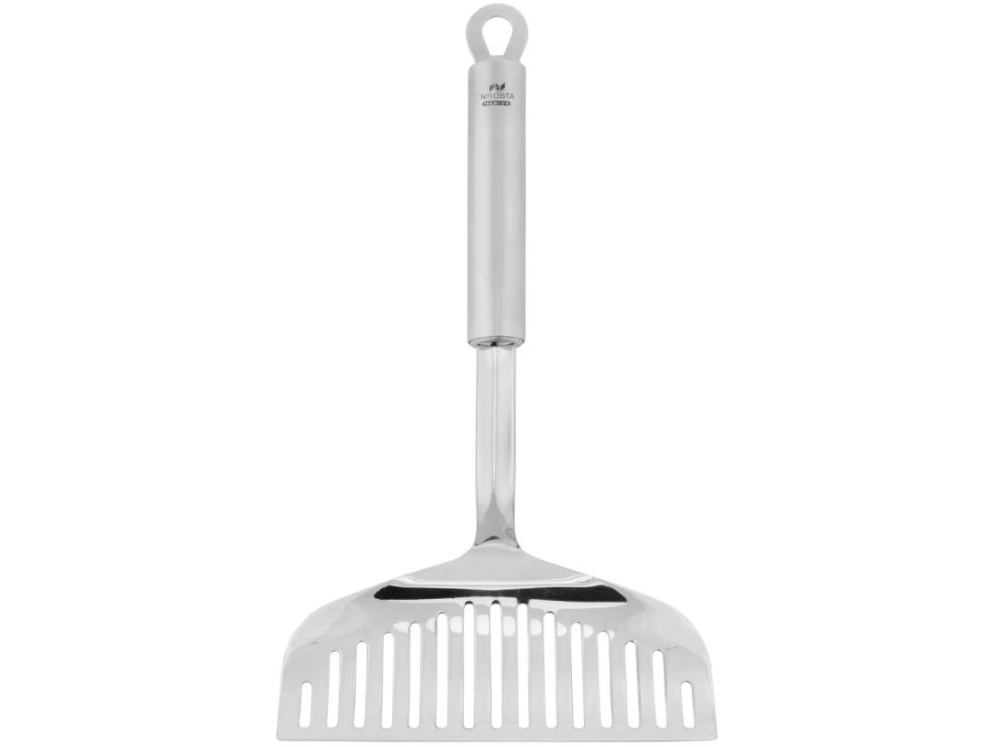 Металлическая лопатка довольно жесткая, поэтому не подходит к посуде с антипригарным покрытием.
