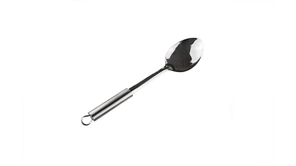 Ложка выполнена из нержавеющей стали - экологичного и безопасного материала. Он не вступают в окислительные реакции с продуктами во время готовки.