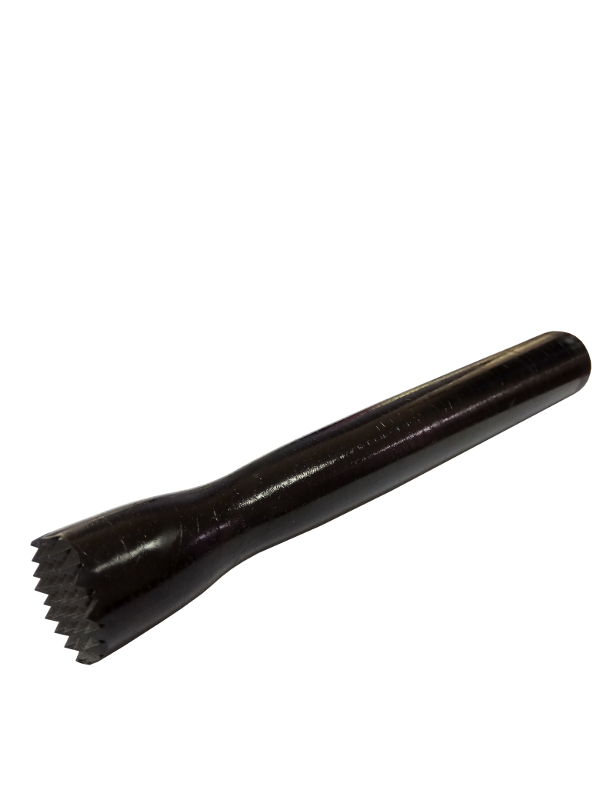 Давящая сторона с зубцами, которые не позволяют фруктам выскальзывать из под мадлера.