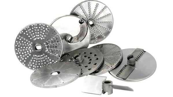 Комплект 6 дисков для CL 30, CL40: слайсер 2 мм (огурцы, лук) и 4 мм (помидоры, перец), терка 2 мм (морковь, свекла, сыр), соломка 4x4 мм, комплект для нарезки кубиками: ломтики 10 мм + решетка 10Х10 мм (морковь, вареный картофель).