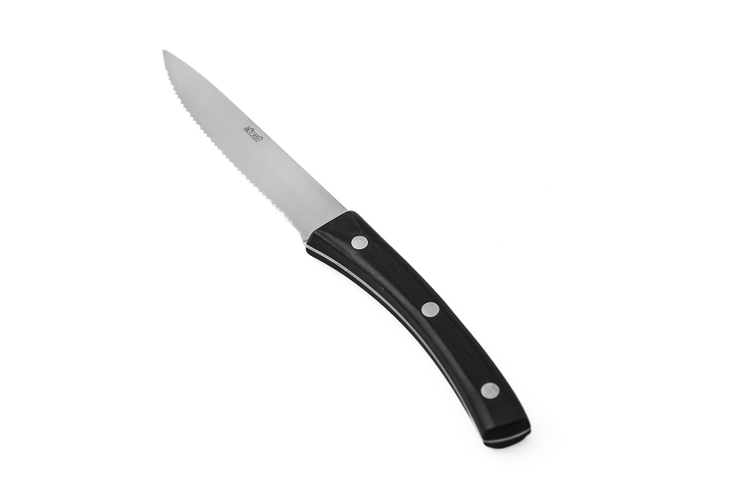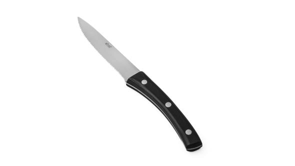 Нож для стейка Abert Angus с зубцами и пластиковой ручкой – профессиональный столовый прибор, предназначенный для мясных блюд и стейков.