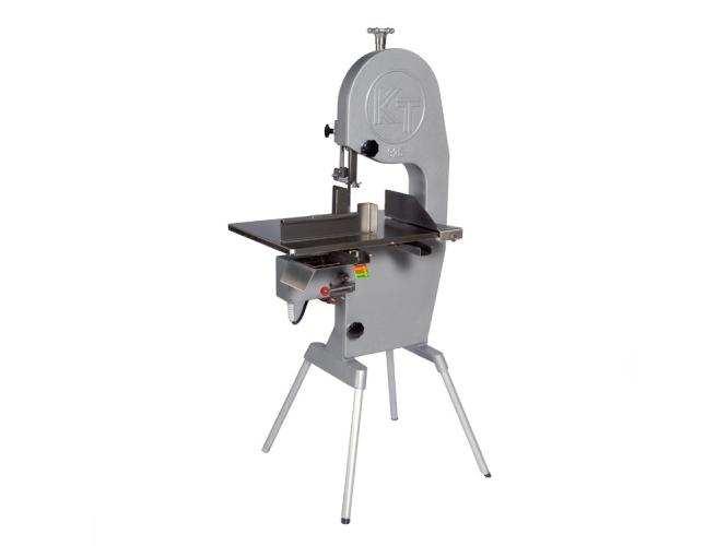 Пила для мяса Koneteollisuus Oy (KT) 400 используется на предприятиях пищевой промышленности и торговли для нарезки на куски свежего и замороженного мяса, рыбы и птицы. Модель с 1 скоростью оснащена подвижным столом и тормозным двигателем, благодаря которому режущее полотно останавливается мгновенно после отключения электропитания. Рабочее полотно, защитный кожух и кожух полотна выполнены из нержавеющей стали, корпус пилы и ножки - из алюминия.