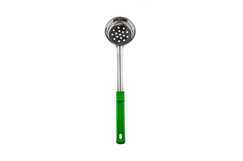 Половник 0,12 л.нерж. L ручки 27 см. d=8,6 см.плоское дно перф. с пласт.руч.зел.MGsteel /1/72/ АКЦИЯ