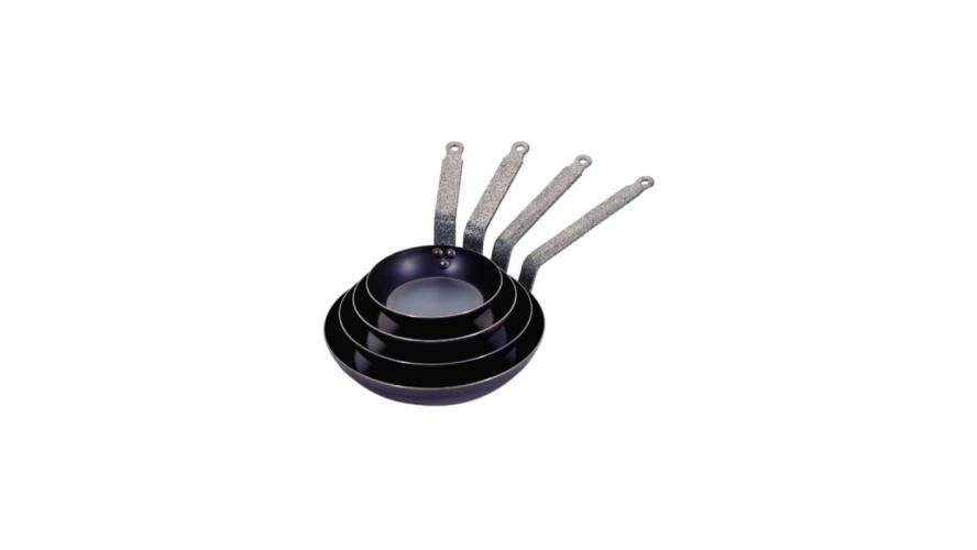 Главной особенностью данной линейки является голубая сталь высочайшего качества, обеспечивающая равномерное распределение тепла по всему основанию сковороды,