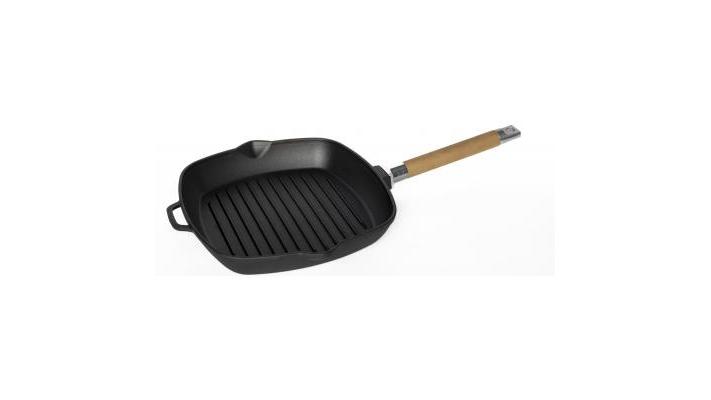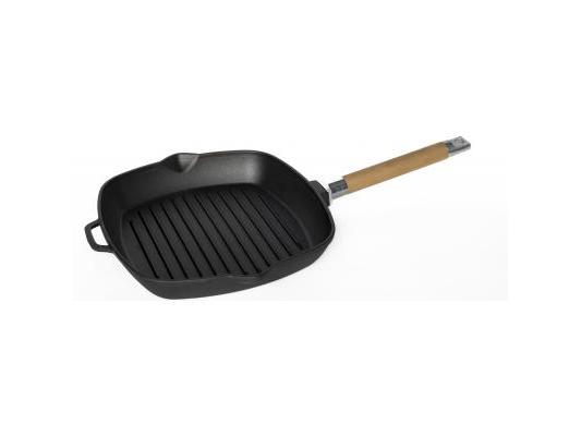 Сковорода-гриль 26*26 см. h=4,5 см. 1,7 л. чугун. рифлен. со съемн дерев. ручкой /1/8/