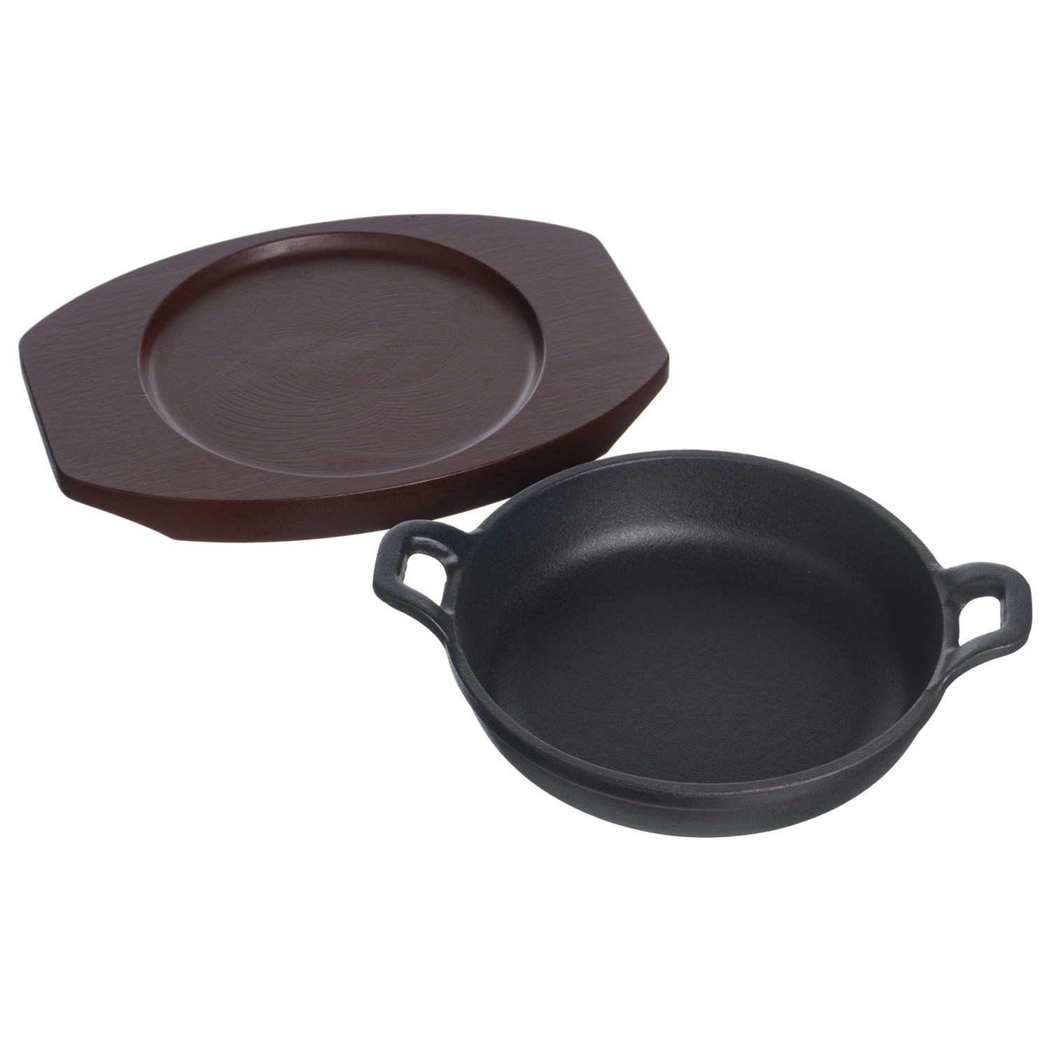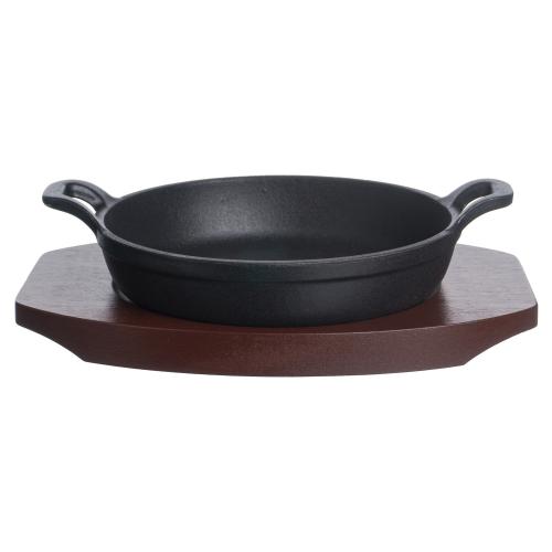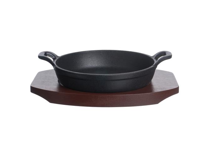 Сковорода порц. d=14 см. h=4,5 см. 0,35 л. чугун. с 2 ручками на дерев. подставке /1/