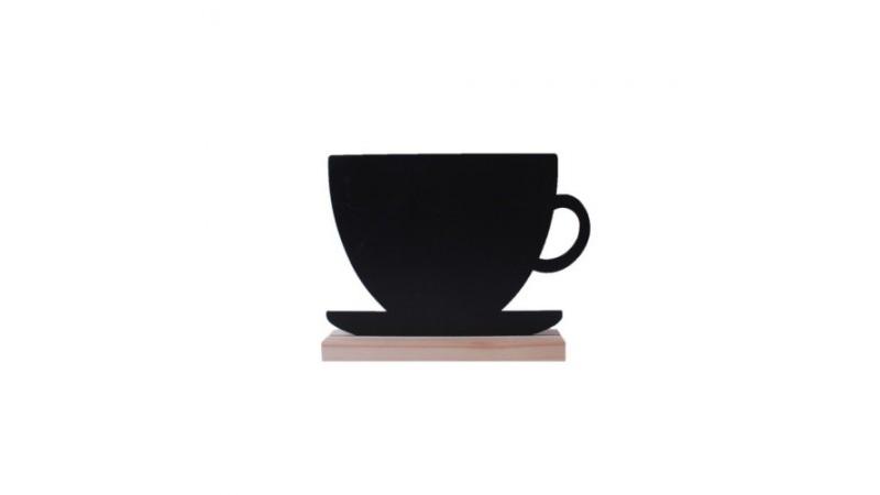 Табличка 239*173*40 мм. меловая Чашка тейбл тент на дерев. подставке /1/