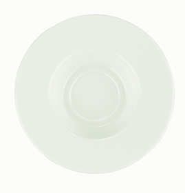 Тарелка белого цвета со сливочным оттенком.