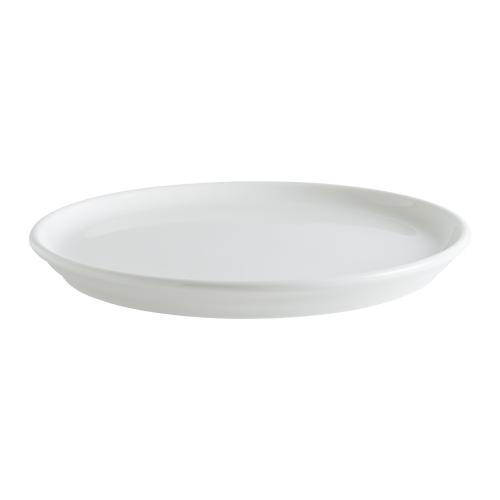 Тарелка белого цвета со сливочным оттенком.