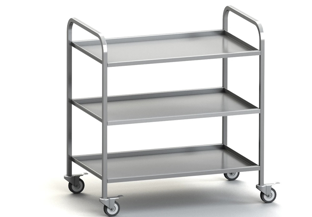 Тележка сервировочная предназначена для транспортировки столовых приборов, тарелок с готовыми блюдами, грязной посуды и т.д. на предприятиях общественного питания.