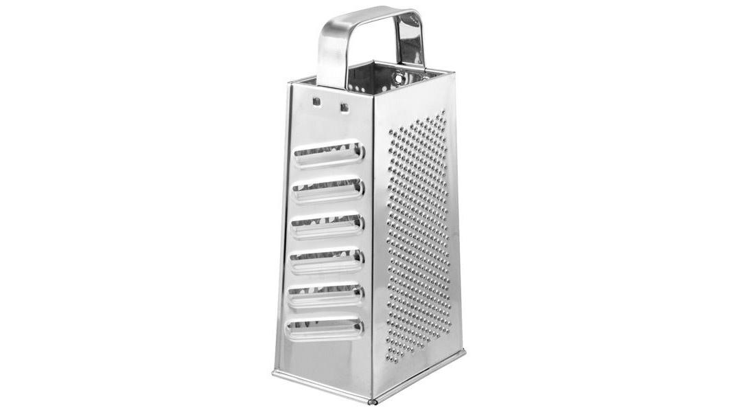 Четырехгранная терка из нержавеющей стали оснащена удобной ручкой.