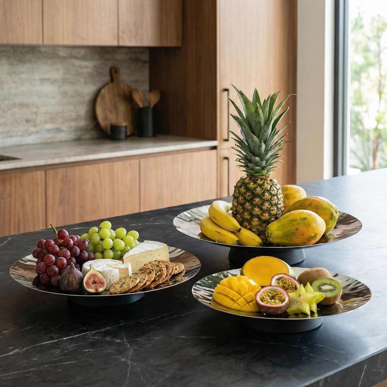Ваза для фруктов 36 см. h=4 см нерж. на дерев. ножке Abert /1/ ВДОХНОВЕНИЕ