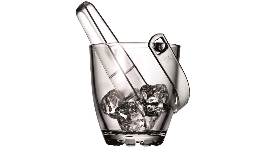 В комплекте есть пластиковые щипцы для порционной подачи льда. Высота ведра всего 13 см, оно не займет много места на столе.