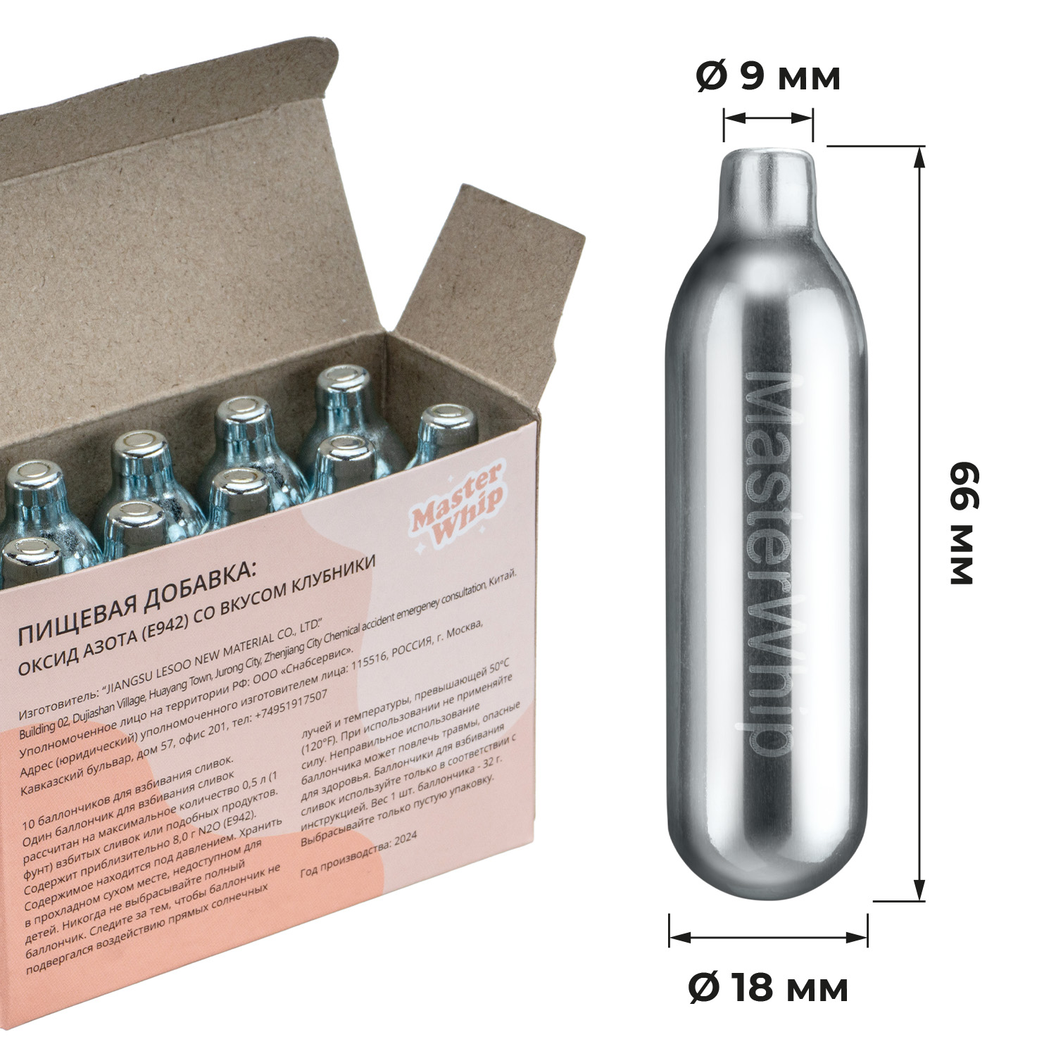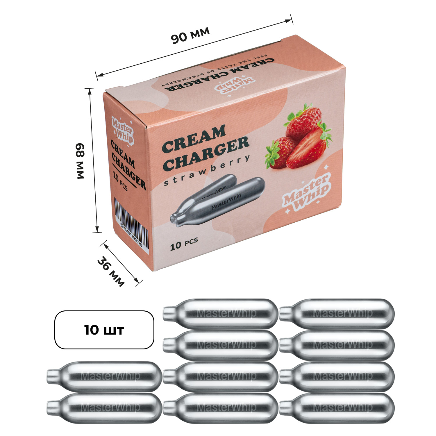 Баллончики для сифона для взбивания сливок (N2O) 10 шт/уп. вкус клубника MasterWhip /1/36/ АКЦИЯ