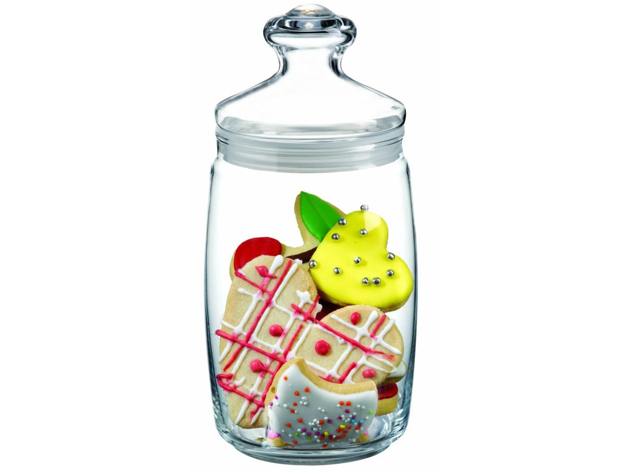 Банка для сыпучих продуктов выполнена из высококачественного стекла.