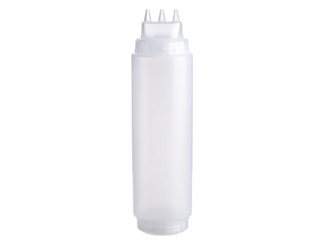 Емкость для соуса 1000 мл выполнена из прочного пищевого пластика и предназначена для профессионального использования в сегменте HoReCa. Конструкция с двумя откручивающимися крышками обеспечивает удобство наполнения, использования и ухода. Тройной дозирующий носик позволяет быстро и точно распределять содержимое. Прозрачный цвет служит универсальной маркировкой и облегчает визуальный контроль содержимого. Подходит для мытья в посудомоечной машине.