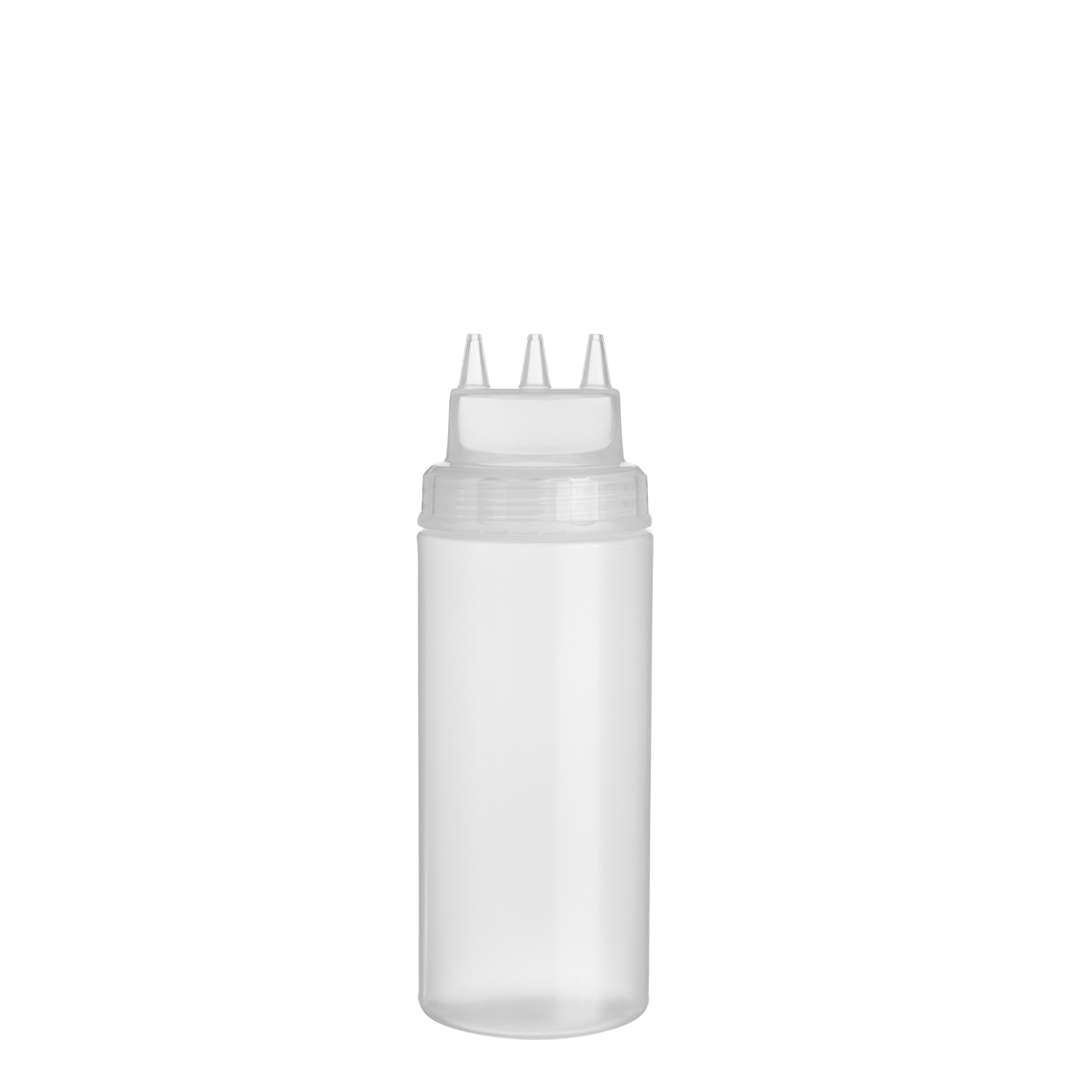 Емкость для соуса 500 мл. d=70 мм. h=200 мм. 3 носика, широкая прозрачная GP /1/48/