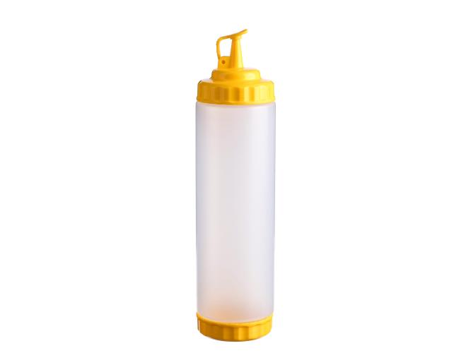 string(902) "Емкость для соуса 750 мл выполнена из прочного пищевого пластика и предназначена для профессионального использования в сегменте HoReCa. Конструкция с двумя откручивающимися крышками обеспечивает удобство наполнения, использования и ухода. Дозирующий носик с крышкой-клапаном предотвращает проливы и защищает содержимое от загрязнений. Желтый цвет служит маркировкой для горчицы и меда. Прозрачный корпус облегчает визуальный контроль содержимого. Подходит для мытья в посудомоечной машине."