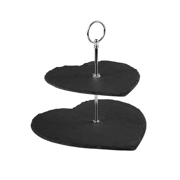 Этажерка 2-х ярусная 20*20/25*25 см. h=23 см. сердце черная, сланец MGprof /1/10/ АКЦИЯ
